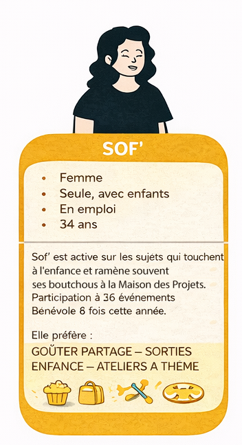 personnes adhérentes ou ayant participé à au moins un événement dans l’une de nos Maisons des Projets.